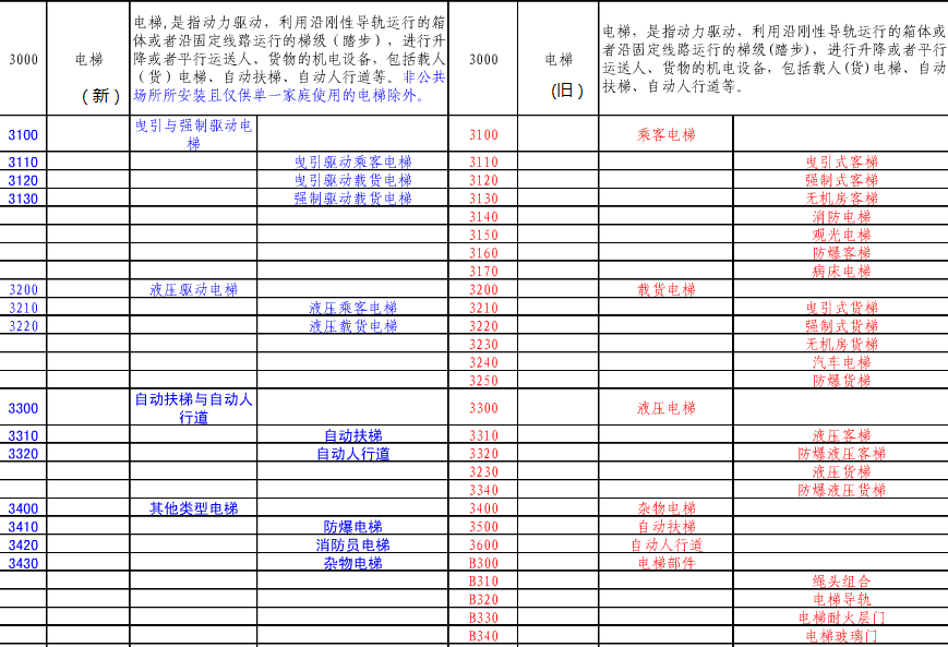 電梯特種設(shè)備目錄(2014版新舊對(duì)照表)